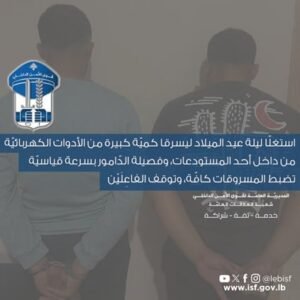 في السّاعة الواحدة من فجر تاريخ 25-12-2 2025، ادعى لدى مخفر السعديات التابع لفصيلة الدّامور في وحدة الدّرك الإقليمي المدعو (ع. ب. من مواليد عام 1969، لبناني) ضد مجهول، بجرم سرقة أدوات كهربائية من داخل مستودع عائد له في بلدة جدرا، وقدّر قيمتها بحوالي /80/ ألف دولارًا أميركيًا
