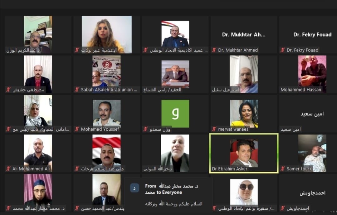 وتابعت المنياوي ان المحاضرين بالمؤتمر هم نخبة من المتخصصين على مستوى العالم وهم دكتور مختار احمد رئيس اتحاد الجامعات الافرواسيوية ودكتور ابراهيم عسكر مدير عام البرامج الوقائية صندوق مكافحة وعلاج الادمان ودكتور ناصر الفضلى رئيس مركز لندن للبحوث والاستشارات بلندن ودكتور امين سعيد عميد كلية الاعلام جامعة السويس ودكتور عبدالكريم الوزان عميد كلية الاعلام الجامعة الإسلامية بأمريكا ودكتور محمد عبدالعزيز مدير مركزلندن للبحوث والاستشارات بلندن ودكتور هانى عبدالرازق استشارى تطوير الذات والمؤسسات ودكتور عبدالكريم الشاعر دكتور جامعى كلية التربية جامعة العريش استشارى التطوير ذاتى ومؤسسى ودكتورة نرمين بهجت عامر عضو هيئة التدريس بالاكاديمية ودكتور سامية عبود عضو هيئة التدريس بالاكاديمية ودكتورة امل يونس عضو هيئة التدريس بالاكاديمية ودكتورة صفاء الحمايدة سفيرة الاتحاد الوطني بفرنسا ودكتورة صباح الصالح رئيس الاتحاد العربى لحماية الطفل ودكتورة هاله القصاص سفيرة الاتحاد الوطنى بروسيا والمستشار خالد السلامى سفير الاتحاد الوطنى دوله الإمارات ودكتور فكرى فؤاد استاذ التحول الرقمى ودكتورة ليلى طلحة سفيرة الاتحاد الوطني بالجزائر وعقيد محمد صقر سفير الاتحاد الوطنى بفلسطين ودكتور محمد السعيد عطا الله عضو هيئة التدريس بالاكاديمية والعميد محمد حشيش المتحدث الرسمي للاتحاد الوطنى ودكتور عمرو هيكل عميد أكاديمية الاتحاد الوطني لإعداد القادة